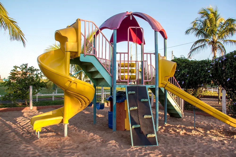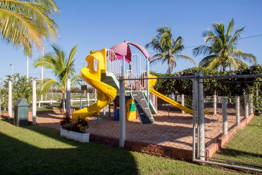 Temos 2 playgrounds para diversão da criançada. Um fica próximo ao restaurante e outro próximo as Piscinas e quadra de tênis.