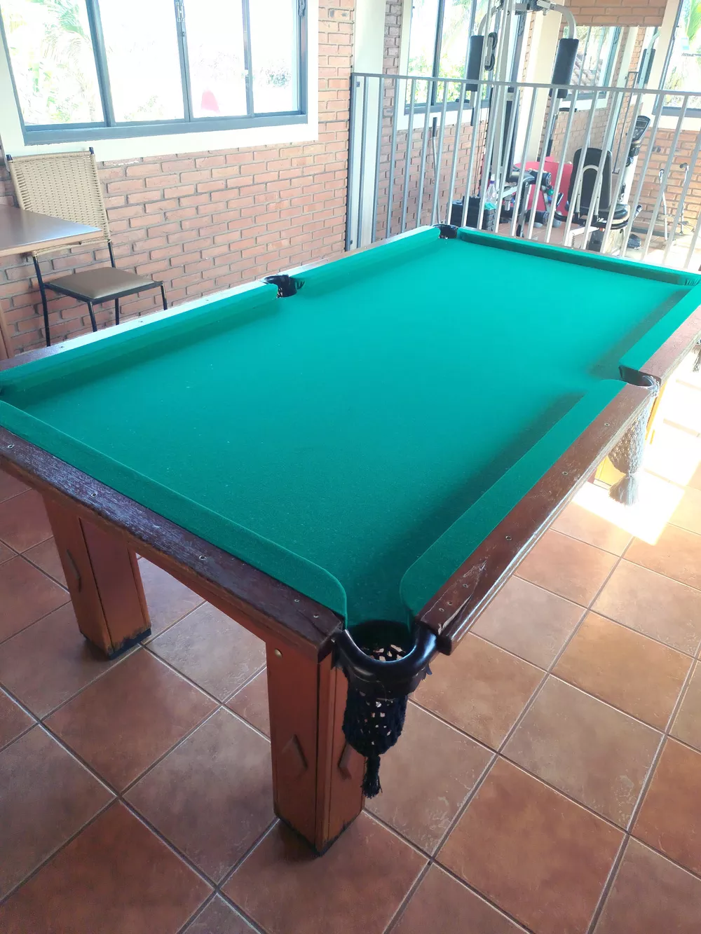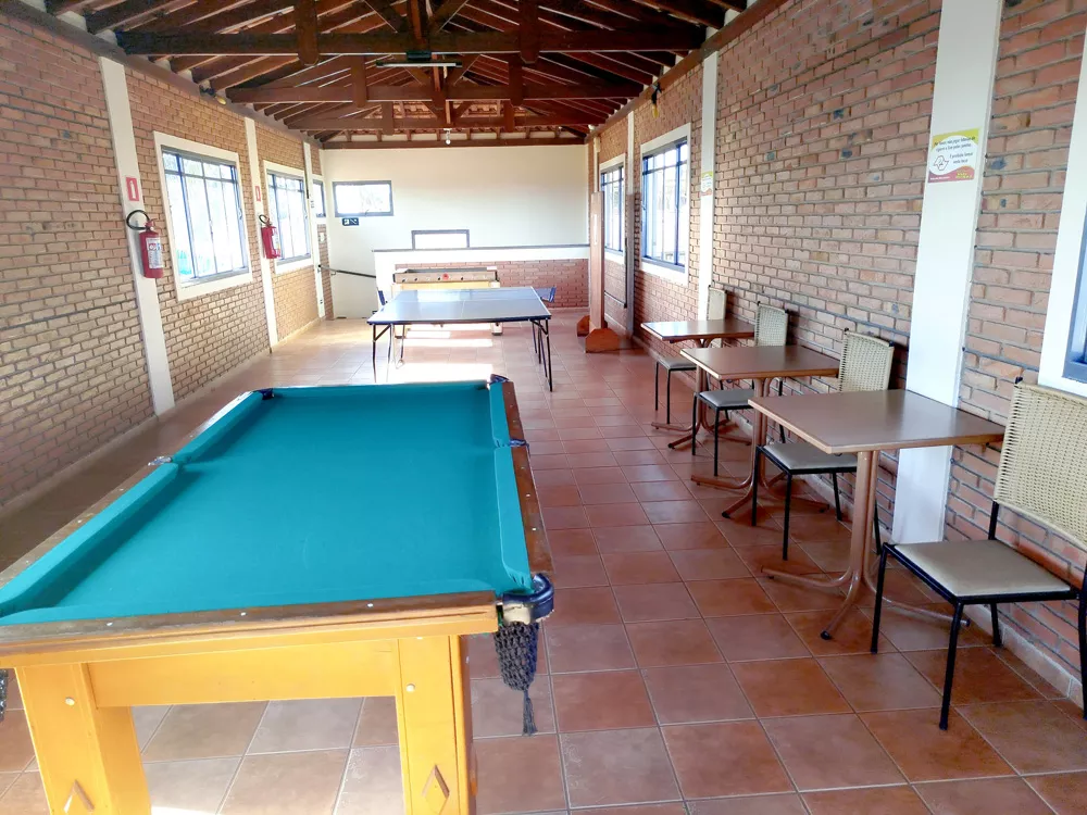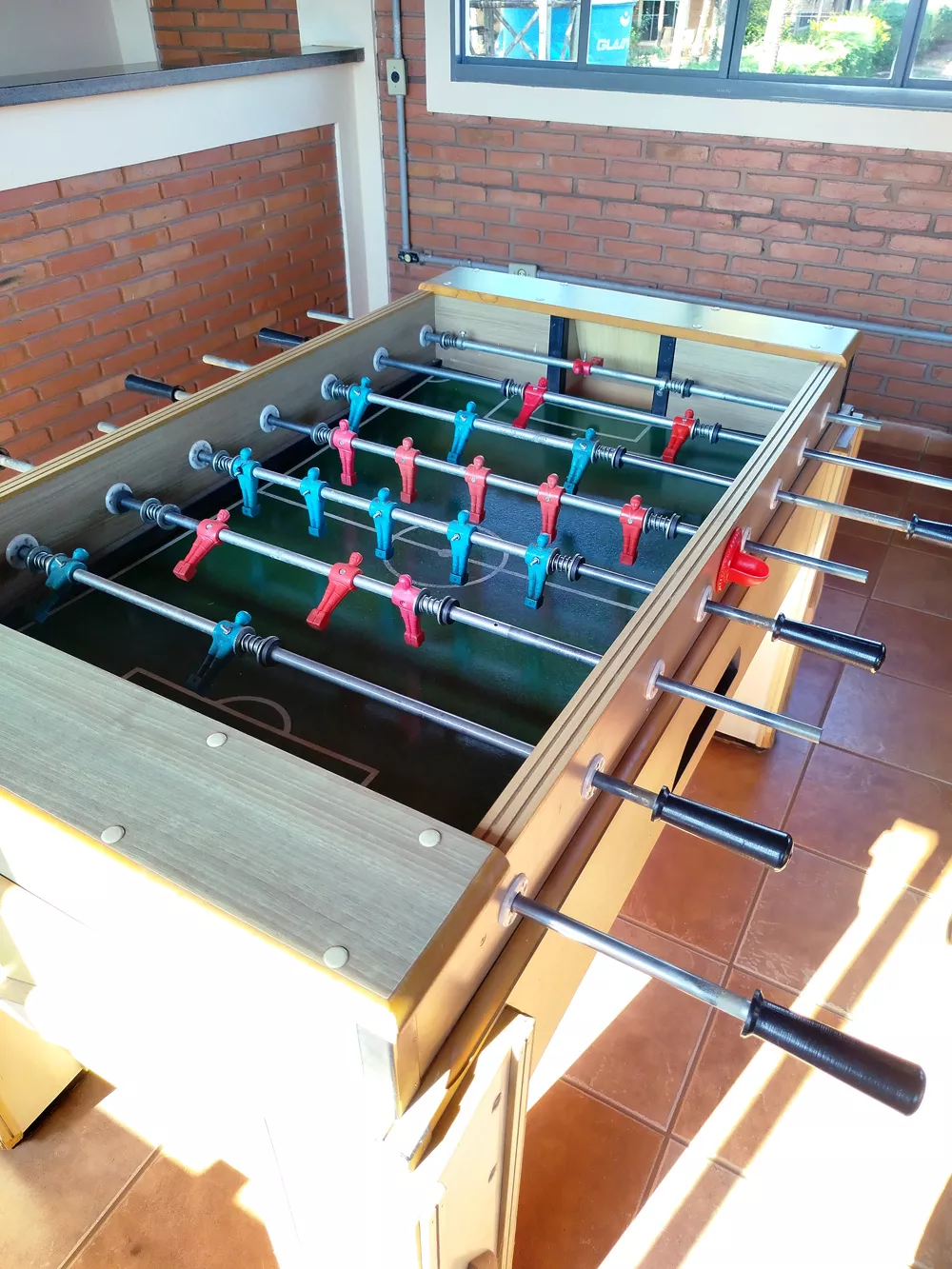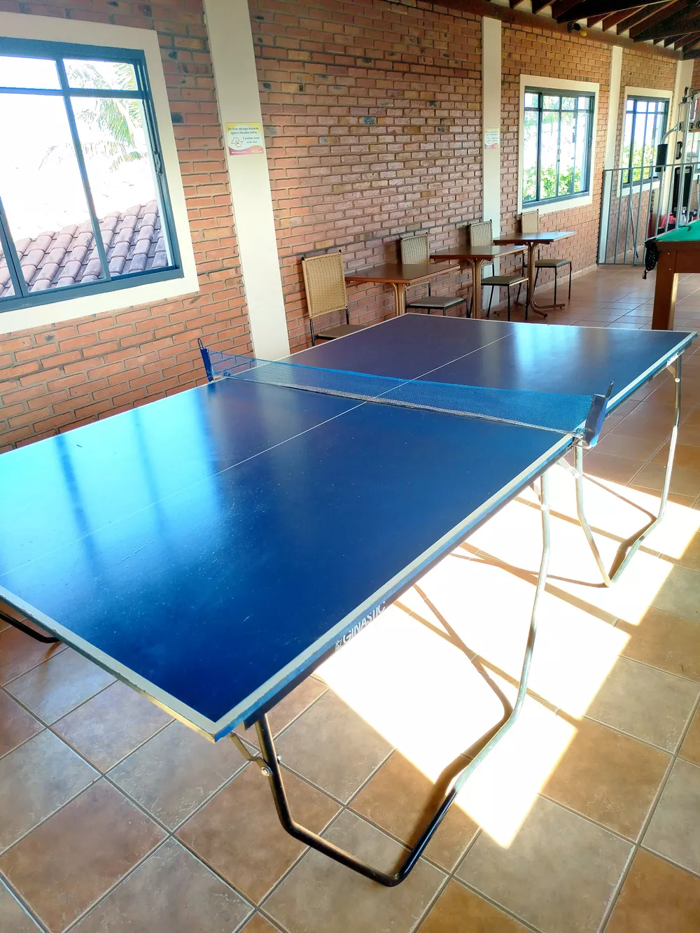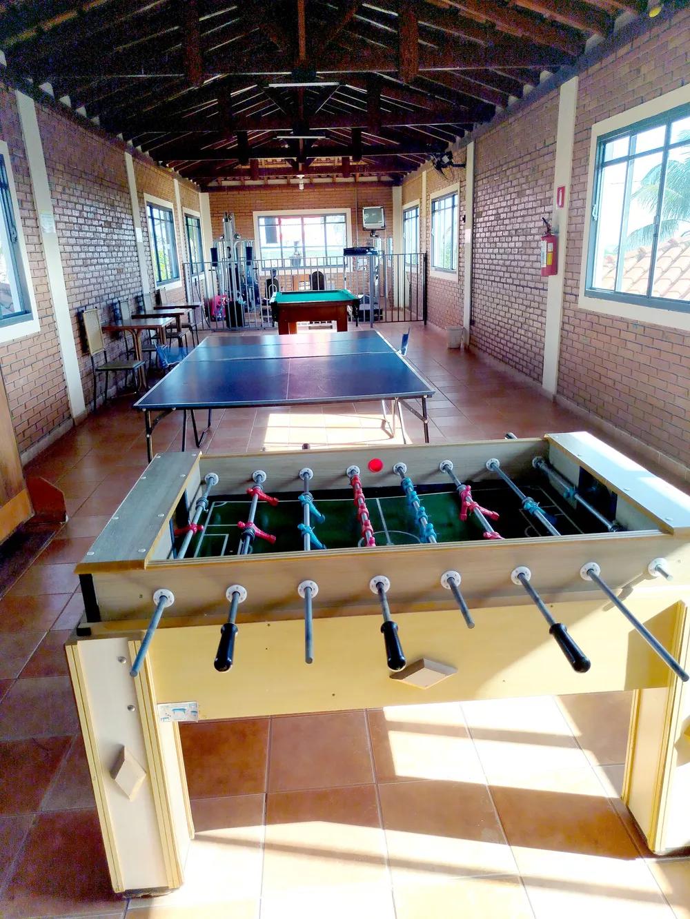 Mesa de bilhar, ping-pong pimbolim e a academia completa.